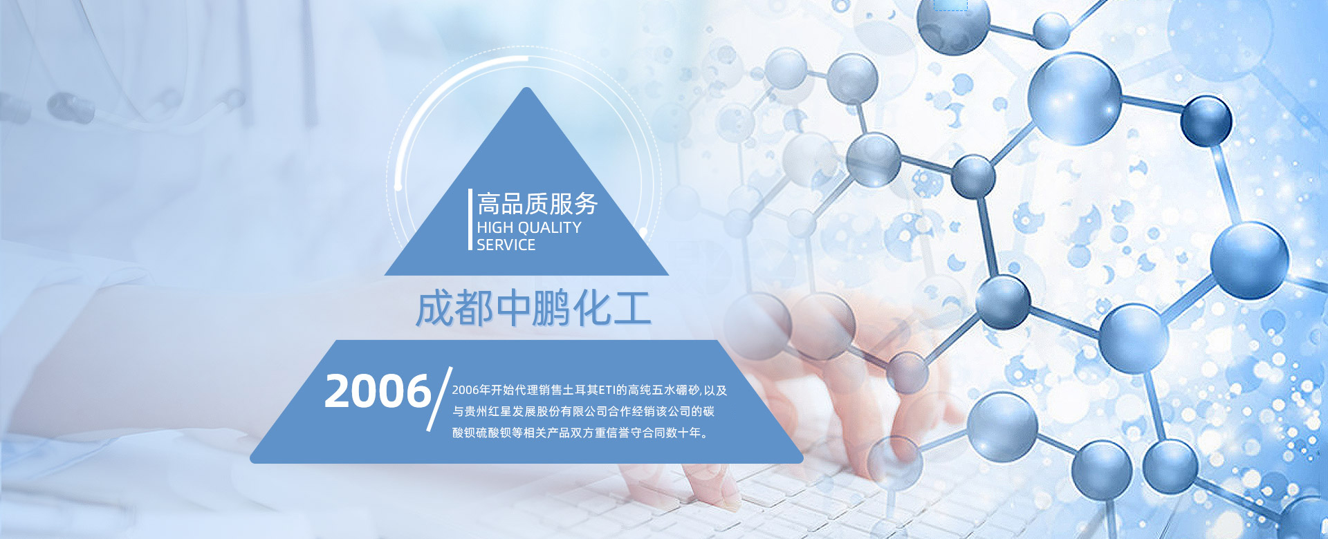 成都中鵬化工有限公司成立于2001年,位于成都市新都區木蘭木名商塑化城2棟11號,公司成立16年以來,一直堅持為客戶提供各種基礎化工原料的產品。我公司長期對于玻璃、陶瓷、電鍍、洗滌、“硼砂”、“碳酸鋇”、“氯化鋅”、“氯化鉀”、“硫酸鋅”等基礎化工原料的開發供應。 公司現在員工上百人,在全國擁有多個營銷體系和完善的售后服務體系,長期以來,通過為客戶提供各種基礎化工原料的產品,形成了良好的合作關系...